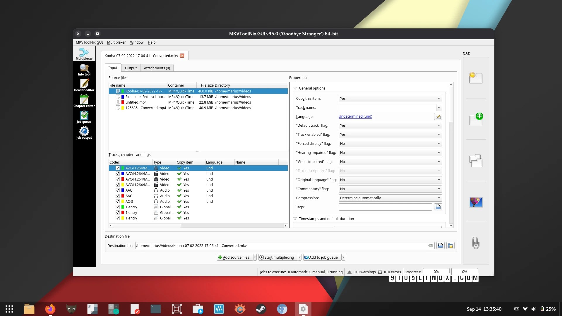 MKVToolNix 还支持 Arch Linux、Slackware、Ubuntu 25.04、Fedora Linux 42、Linux Mint 22、Raspberry Pi OS、AlmaLinux 10、Zenwalk、Gentoo、openSUSE、Mageia 和 CentOS Stream 10 发行版,还有可以从 Flathub 安装的官方 Flatpak 应用程序。