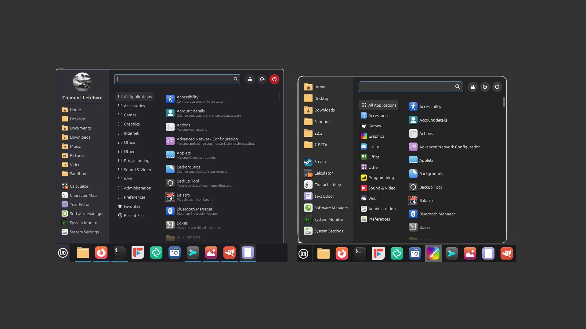 除了对键盘布局和输入方法的改进支持外,Cinnamon 桌面环境的下一个版本将推出一个全新的应用菜单,其布局包括一个侧边栏,其中包含用户头像、位置和常用应用等部分。