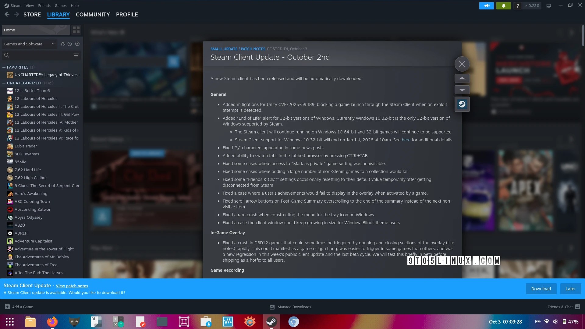 当然,还修复了众多其他错误,您可以查看发布说明以获取关于这次新 Steam 客户端更新中包含的更改的更多详细信息。同时,您可以通过前往 Steam 菜单并点击“检查 Steam 客户端更新”菜单项来更新您的 Steam 客户端安装到新版本。