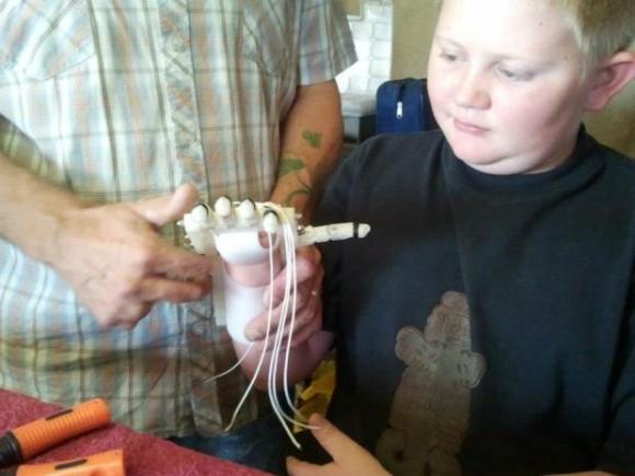 之后,Richard又想到了用这种方法来帮助那些失去手指的孩子们。第一个受益的是5岁的Liam。他因患有羊膜带综合症而导致右手从小就没有手指。在孩子母亲的要求下,Richard为Liam打造了一只低价的3D假肢--Robohand。