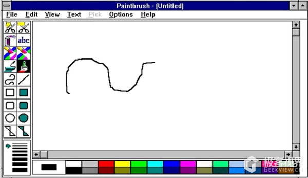 那时,在学校里上电脑教学课的,一定玩过这个吧。Windows自带的画图工具Paintbrush,支持16位与24位色,图片格式还不支持JPG,BMP格式够折腾人的,功能简单,工具就那几个,但我们却能这样画上一天,原来画画不只是笔跟纸的事。