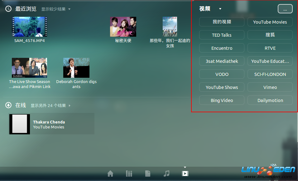 Ubuntu TV 集成了广播、在线服务,可搜索、观看、录制和播放视频。