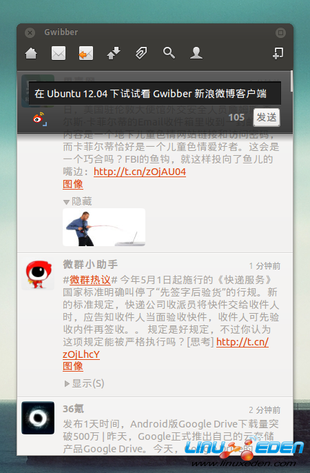 sudo apt-get install gwibber-service-sina #新浪微博 sudo apt-get install gwibber-service-sohu #搜狐微博
