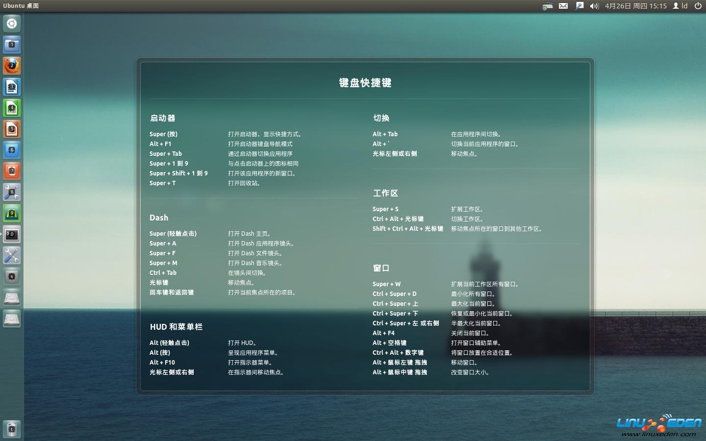 这里需要特别指出的是,Ubuntu 12.04 新增的2个快捷键: