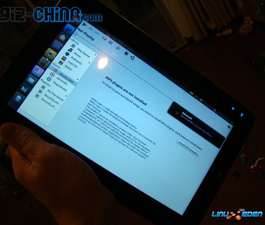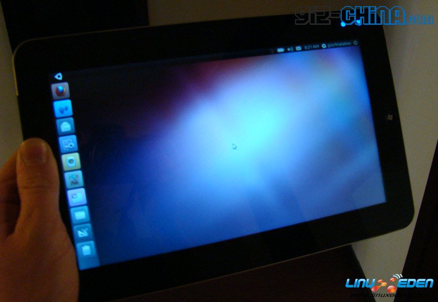 据称这款产品还没有完全开发完成,这台 10 英寸平板电脑搭载了 Ubuntu Netbook 10.10 操作系统,并且支持多点触摸。硬件规格为采用 Intel Atom 1.6 Ghz CPU, 2 Gb 内存和一个 32Gb SSD 硬盘。虽然目前存在较多的 Bug ,但感觉还是蛮不错的,尤其是在启动方面几乎瞬间启动,其它如价格方面及厂家信息等没有任何相关消息。
