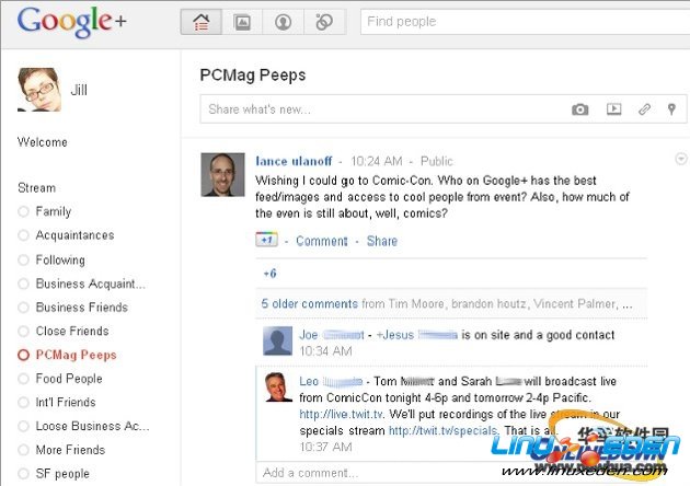 Google+的流类似Twitter中的“列表”,它非常容易看到你添加的用户的更新状态,也就是说,你划入某个圈子的人,点击圈子的名称,在流中公布只有圈子里人才能看到的内容。