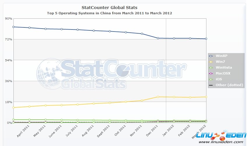 另外看到中国的数据,和上月基本一致,只是一少部分别有用心的xp用户转换成了win7用户而已,其他并无变化。有个疑问,在去年11月到12月究竟发生了什么事,导致数据变化这么大?