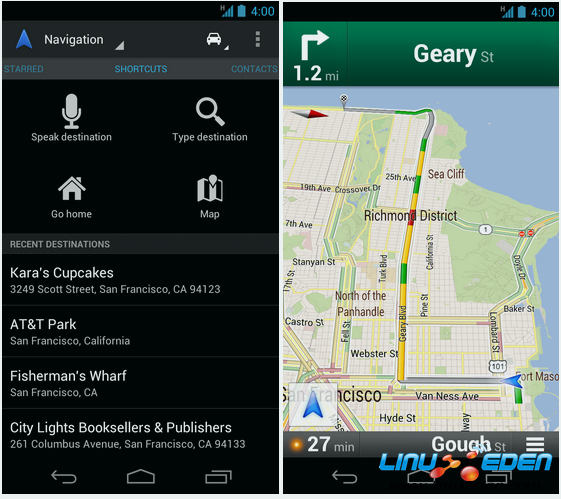Google软件工程师Harlan Hile说:“目前为止,Android的Google地图导航的工作量已经相当于地球自转50亿公里,相当于13万人次到月球旅行,334人次达到太阳,10人次到达海王星,折合0.005光年。”这次地图新版本主要针对Android4.X设备屏幕设计,这次升级使用户更方便判断离的最近或者最喜欢的地点如何更快速到达。