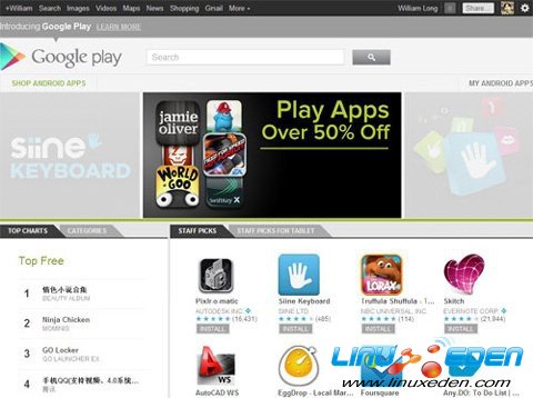 先来看看Google Market改名的事,2012年3月7日,Google宣布将出售应用、视频、音乐、电子图书的在线商店Android Market更名为Google Play Store,Google做出这样的决定,显示出其淡化Android市场,而强化Google品牌的重要性,同时整合原有的GoogleMusic(谷 歌音乐)和GoogleBooks(谷歌电子书)频道。这两个频道推出已经有一段时间了,但对于其主要竞争对手苹果iTunes和亚马逊Kindle来说 毫无优势可言。虽然AndroidMarket获得了一定的成功,但比起苹果AppStore还有相当大的差距,将这三者整合有利于提高Google应用 商店的整体竞争力,并提升品牌形象。