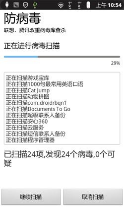 参测杀毒软件:360手机卫士、腾讯手机管家、LBE安全大师和联想乐安全。
