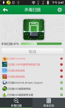 LBE安全大师总共扫描软件数为206,发现恶意软件为69个,查杀率超过一半以上,总体表现非常理想。