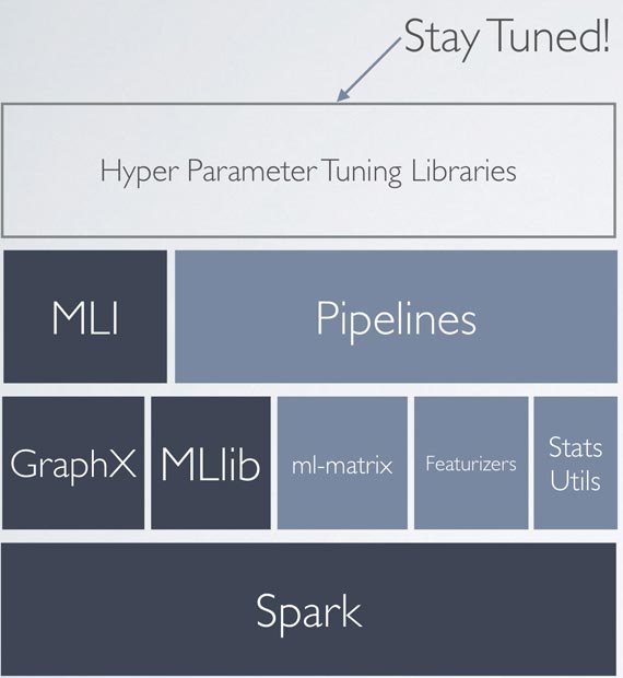 在Strata+Hadoop World New York的报告上,伯克利教授Ben Recht描述了他们新的伯克利 AMPLab项目,该项目旨在提供一种构建和管理大规模机器学习的通用流程。鉴于AMPLab与Spark项目的紧密联系,该项目的一些想法已在Apache Spark中初现端倪。