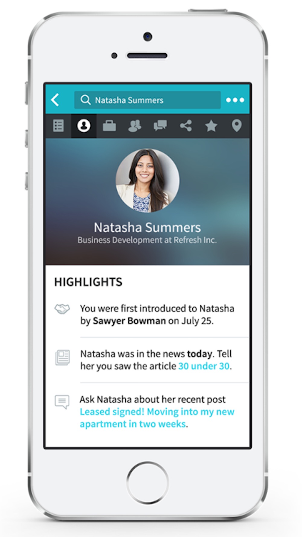 Refresh 可以用 Facebook 或者 LinkedIn 账号登入,并与日程、邮件绑定,有 iOS 和 Web 版本。在约定的会面之前,它可以帮助你回顾与对方初识的场景、邮件往来、在社交网络上的互动等。同时,它会自动抓取对方的社交网络动态、博客更新;如果对方是知名人士,还能够显示关于对方的新闻报道。