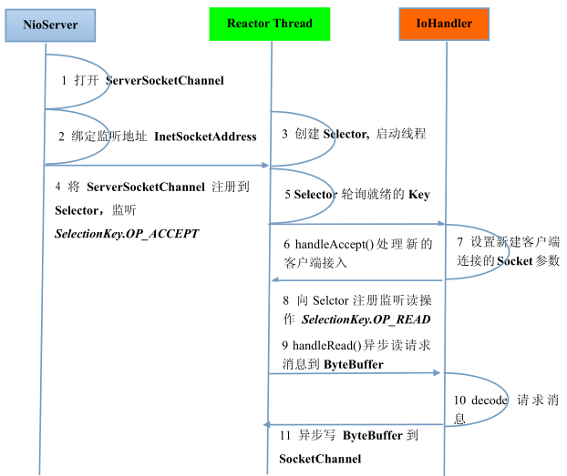 最简单的NIO服务端创建程序流程: