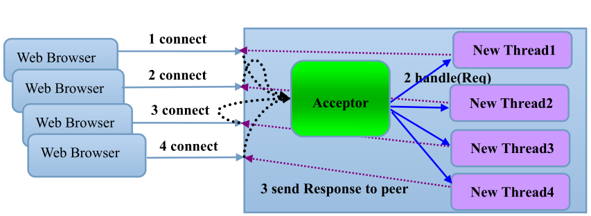 传统同步阻塞通信的处理模型图如下: