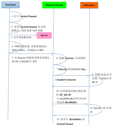 在分析Java原生NIO类库复杂性之前,我们首先看下最简单的NIO服务端和客户端创建流程。