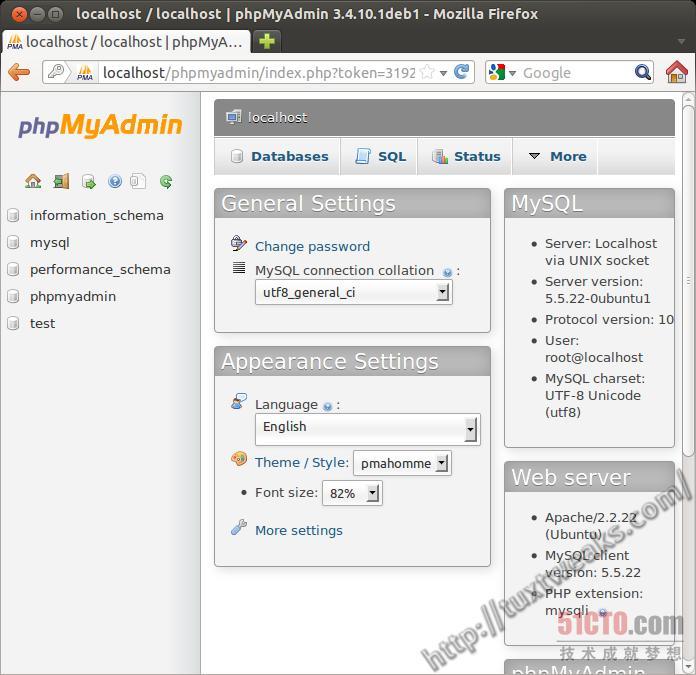 恭喜你,现在你已完成了在Ubuntu 12.04上安装和配置LAMP及phpMyAdmin的工作。现在,你可以开始创建本地的网站了。如果你只是在从事一个网站的开发,可以把文件放入到/var/www。请注意:/var/www归用户和用户组root所有,所以你需要以根用户身的份将文件拷贝过去,或者更改该目录的所有权及/或权限,那样就能在那里写文件了。另外,你可以进行一些另外的Apache配置,那样可以将文件保留在主目录下的某个地方。你甚至可以以那种方式搭建多个网站。